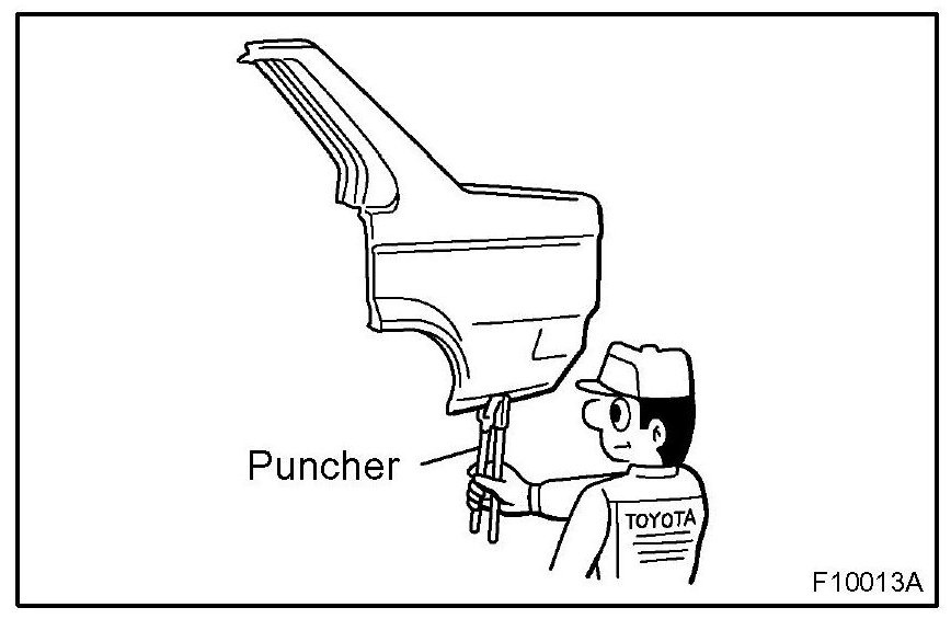 1. For areas where a spot welder cannot be used, use a puncher or drill to make holes for plug welding.