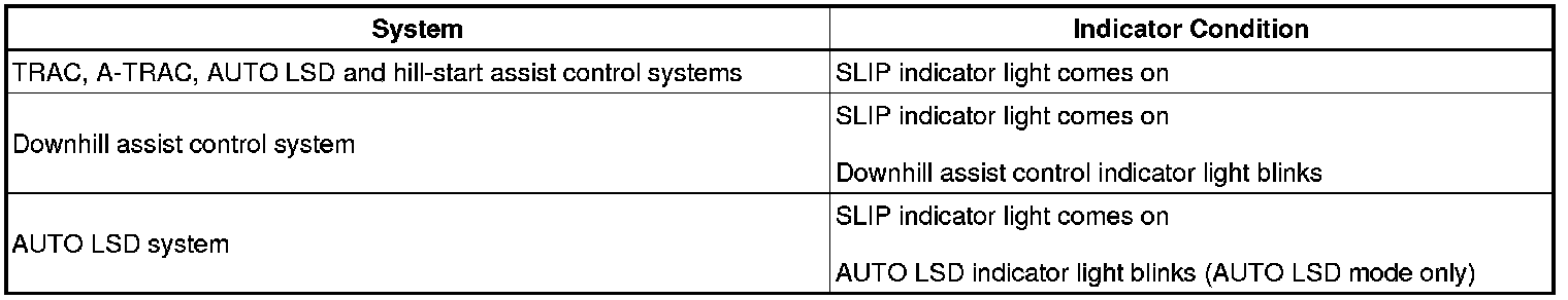 - If the SLIP indicator light goes off (as for the downhill assist control system, the downhill assist control indicator light also comes on), the systems automatically return to normal operating conditions.