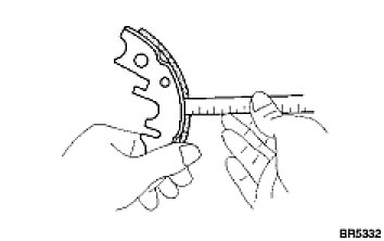 If the lining thickness is at the minimum thickness or less, or if there is severe or uneven wear, replace the brake shoe.