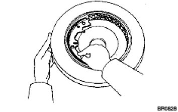 NOTICE: There should be no oil or grease adhering to the friction surface of the shoe lining and disk.
