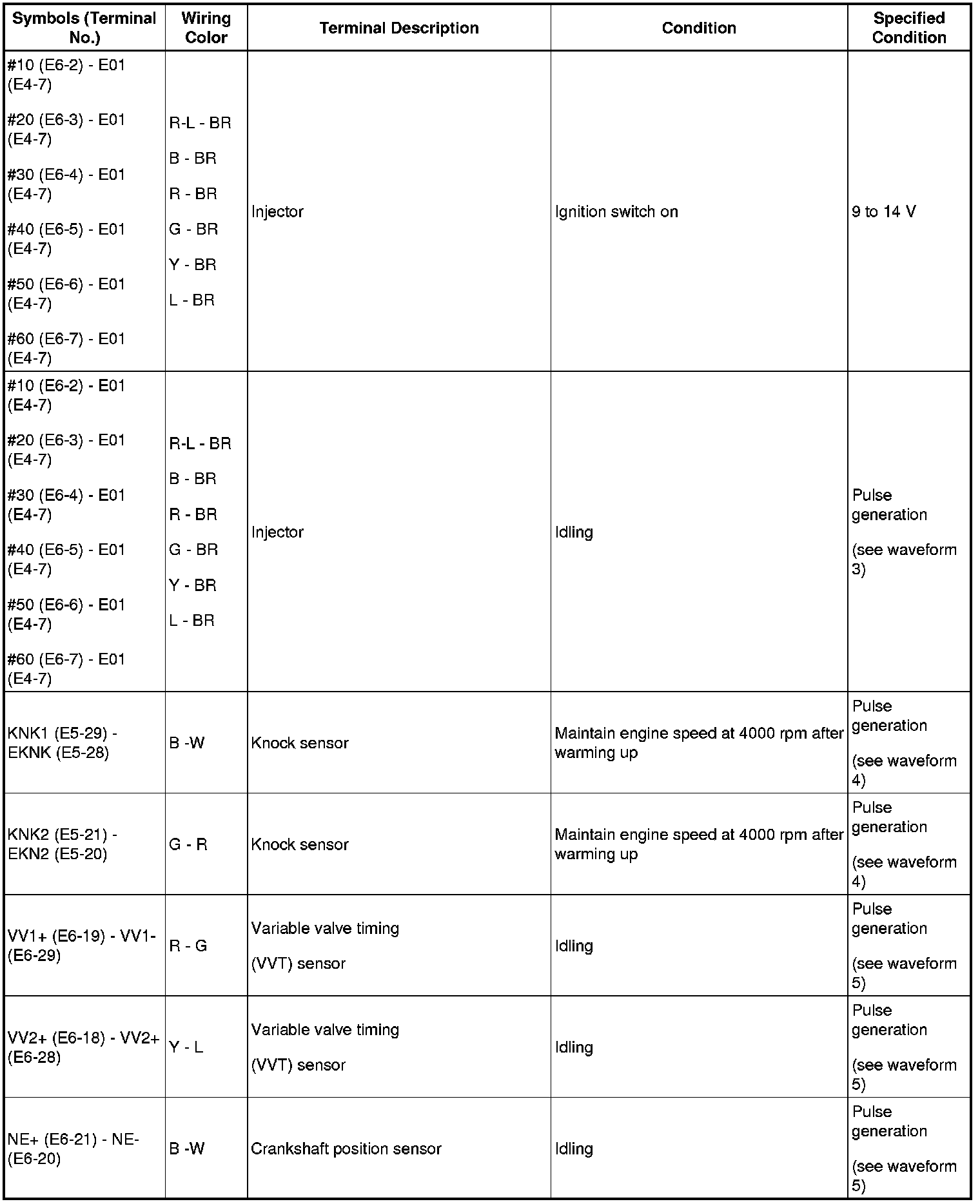 HINT: If the waveform is not similar to the illustration, check the waveform again after idling for 10 minutes or more.