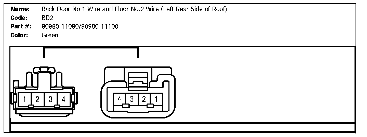 BD2 (Back Door No.1 Wire And Floor No.2 Wire (Left Rear Side Of Roof)):