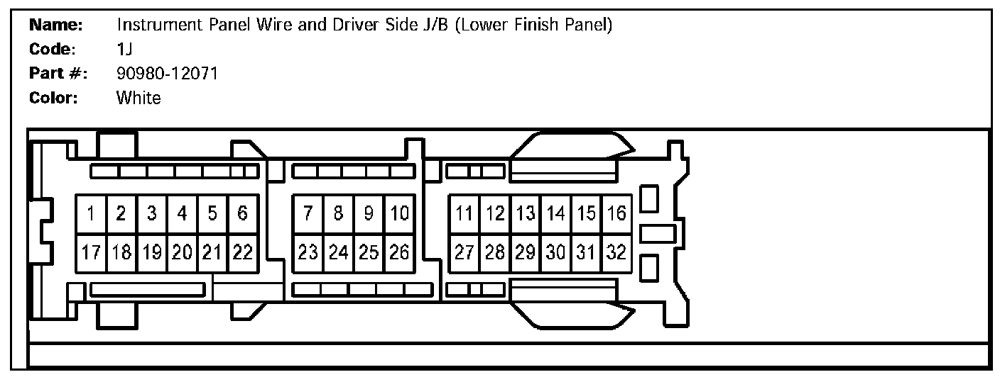 1J (Instrument Panel Wire And Driver Side J/B (Lower Finish Panel)):