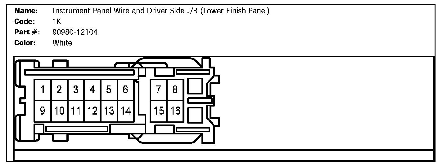 1K (Instrument Panel Wire And Driver Side J/B (Lower Finish Panel)):