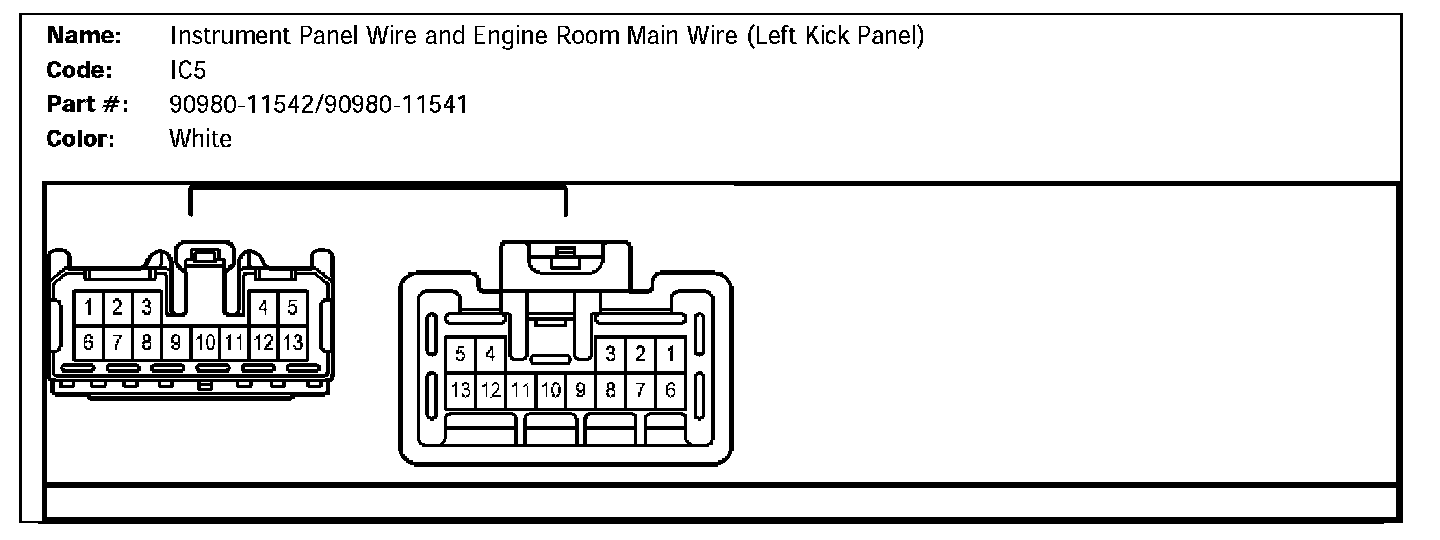 IC5 (Instrument Panel Wire And Engine Room Main Wire (Left Kick Panel)):
