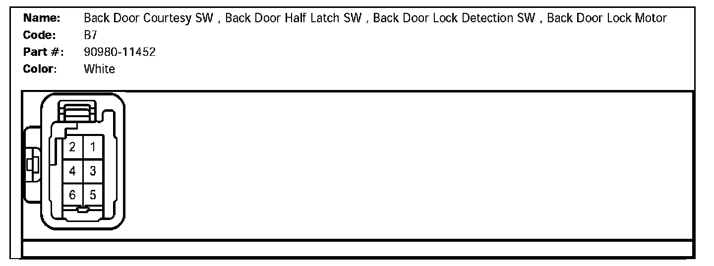 B7 (Back Door Courtesy SW, Back Door Half Latch SW, Back Door Lock Detection SW, Back Door Lock Motor):