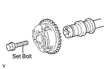 (g) Remove the set bolt and camshaft timing gear assembly.