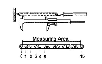 NOTICE: The vernier calipers must contact the chain rollers for the measuring.