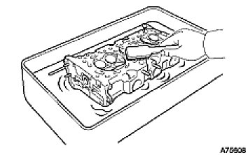 (d) Using a soft brush and solvent, thoroughly clean the cylinder head.