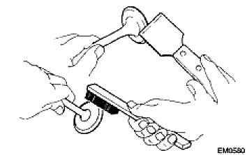 (b) Using a wire brush, thoroughly clean the valve.