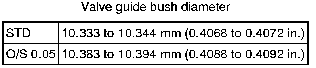 If the bush bore diameter of the cylinder head is greater than 10.315 mm (0.4061 in.), machine the bush bore to the dimension of 10.345 to 10.365 mm (0.4073 to 0.4081 in.).