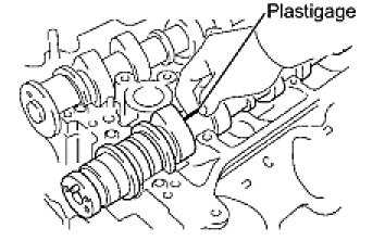 (d) Lay a strip of Plastigage across each of the camshaft journals.