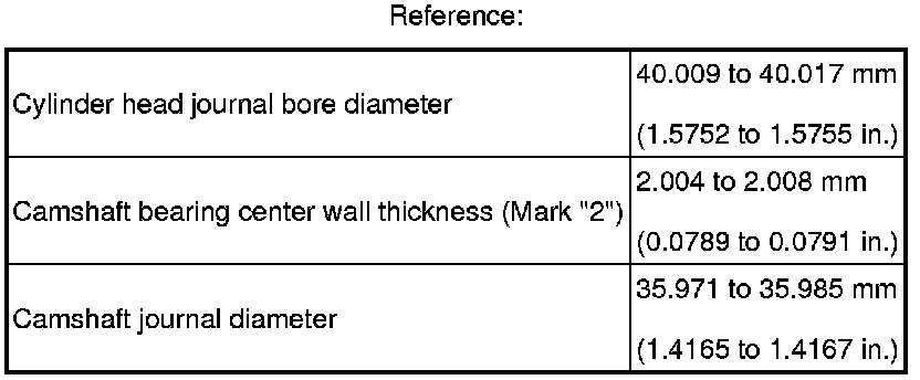 If the oil clearance is greater than the maximum, replace the camshaft bearings and/or camshaft.