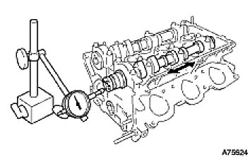 (b) Using a dial indicator, measure the thrust clearance while moving the camshaft back and forth.
