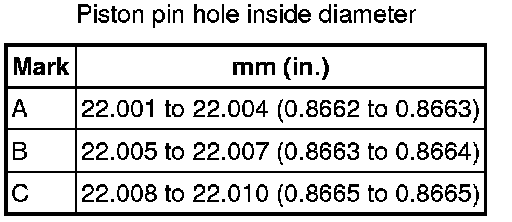HINT: Check that the piston pin fits at a normal room temperature. Coat the piston pin with engine oil, and push it into the connecting rod with a thumb.