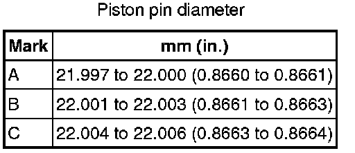 (d) Subtract the piston pin diameter measurement from the piston pin hole diameter measurement.