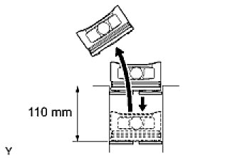 (a) Using a piston, push the piston ring a little beyond the bottom of the ring travel, 110mm (4.33 in.) from the top of the cylinder block.