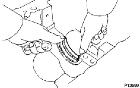 (a) Using a feeler gauge, measure the clearance between the new piston ring and the wall of the ring groove.