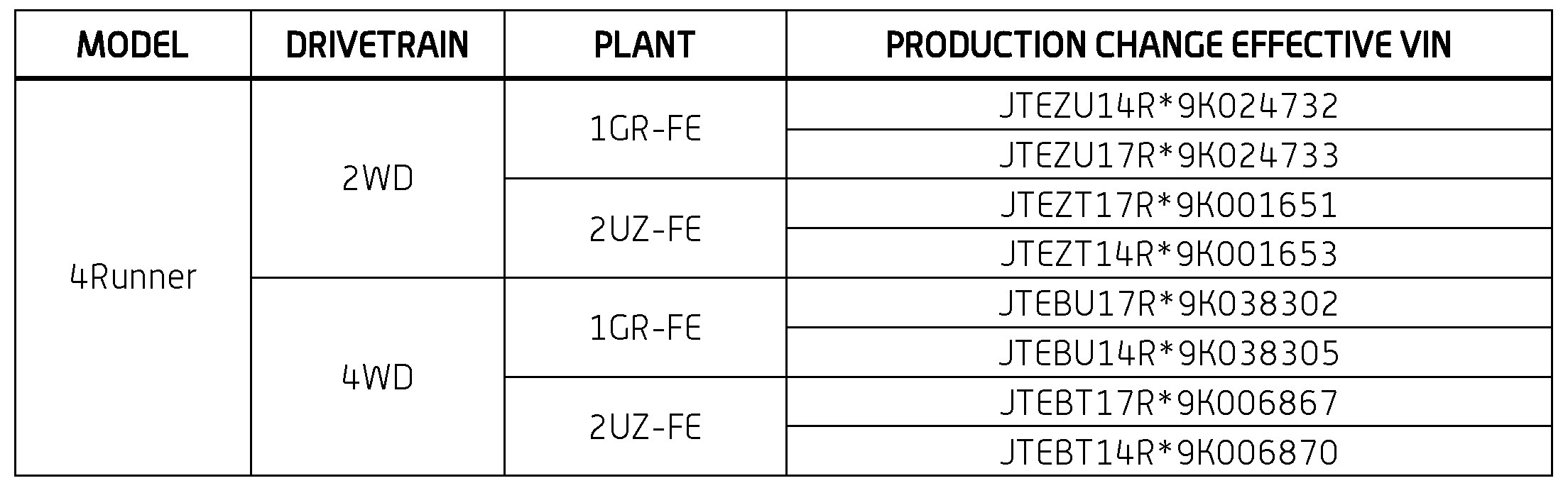This TSB applies to vehicles produced BEFORE the Production Change Effective VINs shown.