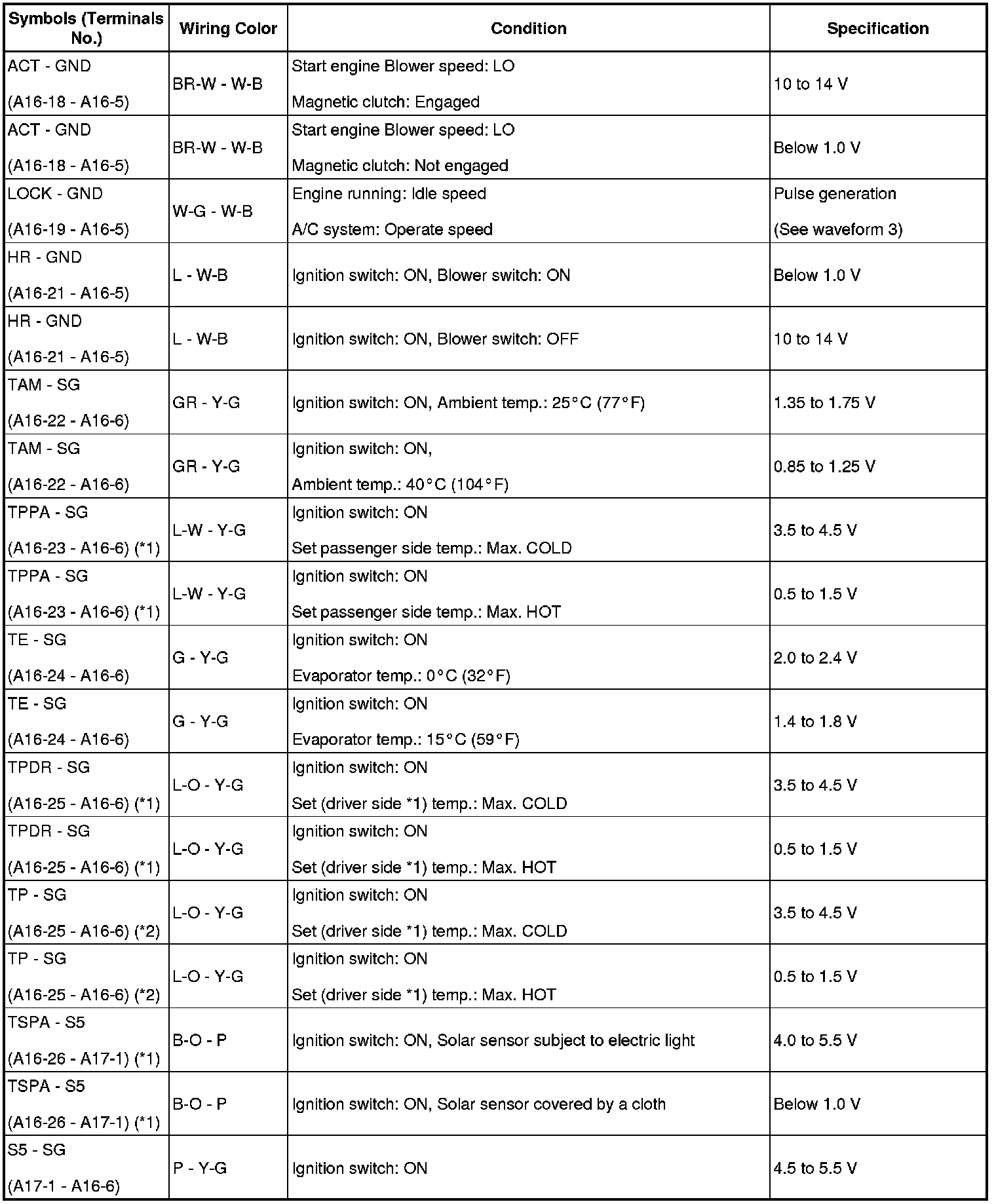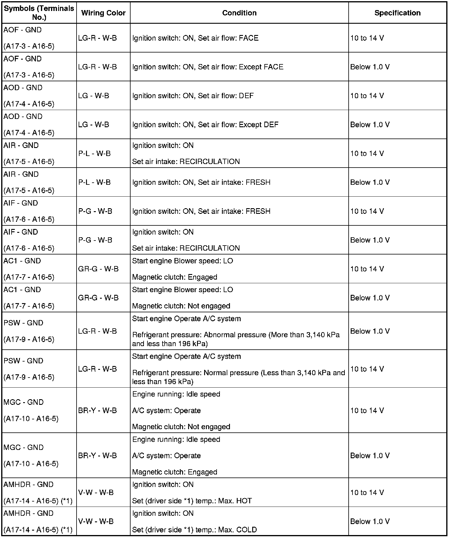 Terminal to be measured: BLW of A/C amplifier