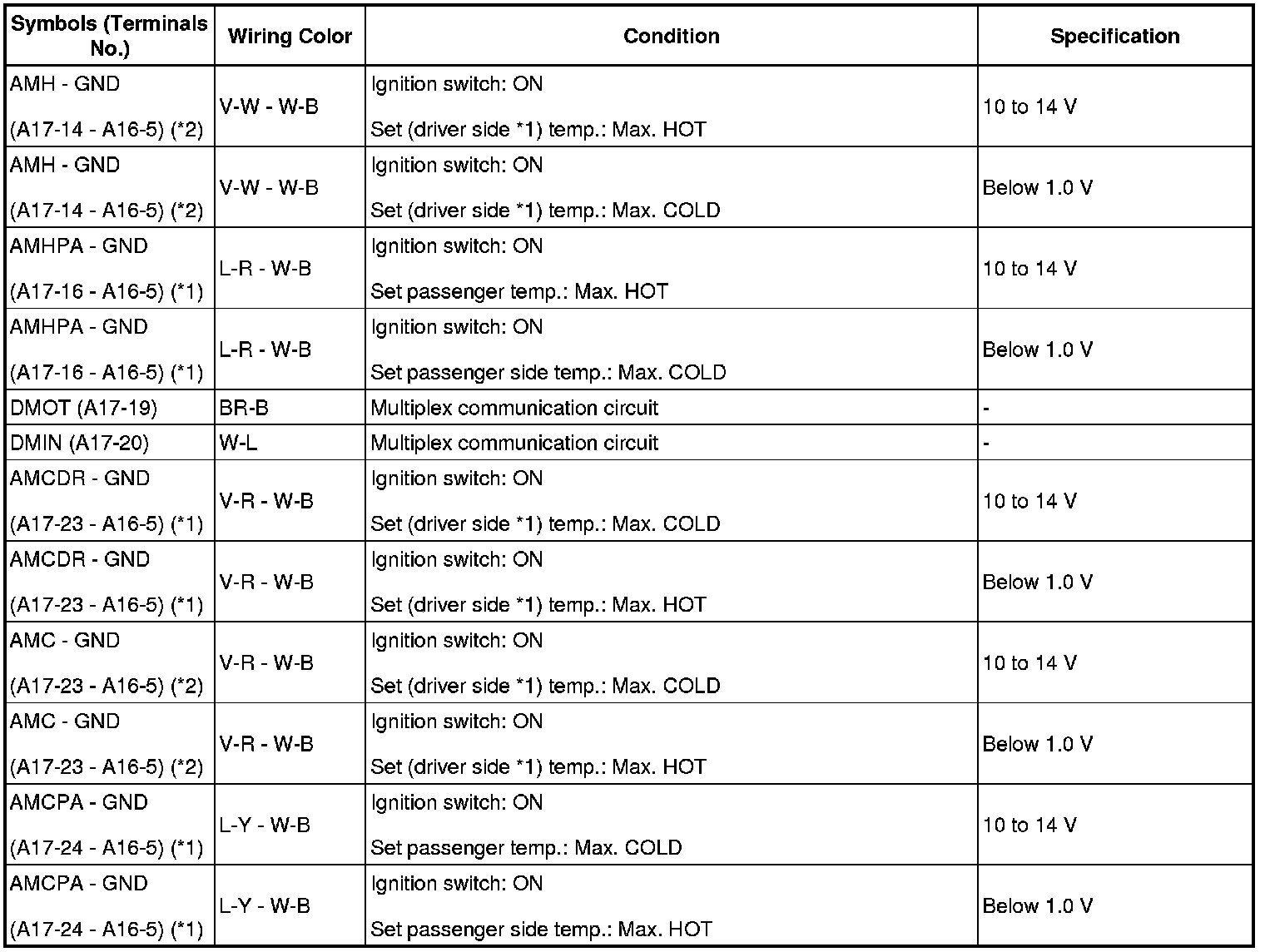 Terminal to be measured: TWI of A/C amplifier and TWHO of ECM