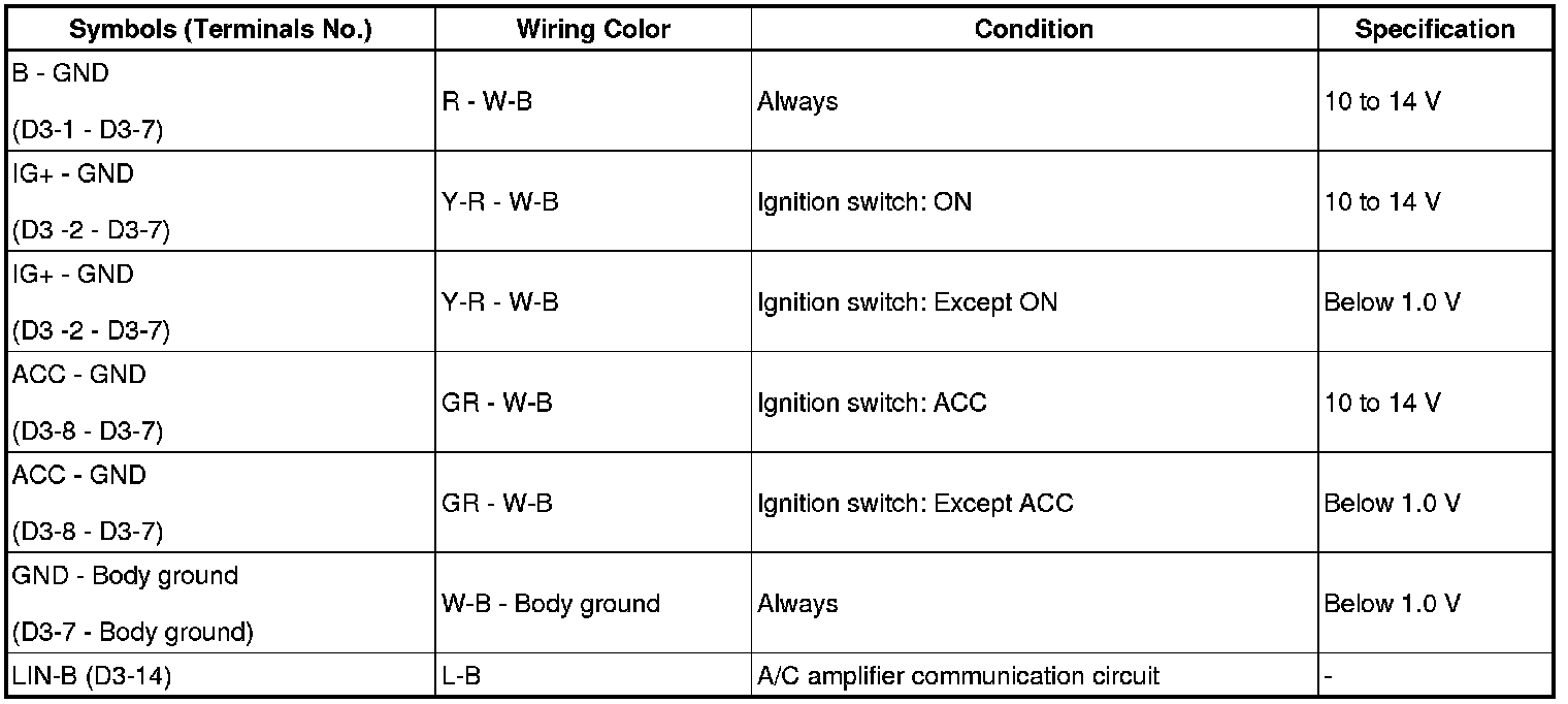 Terminal to be measured: MGC of A/C amplifier and ECM