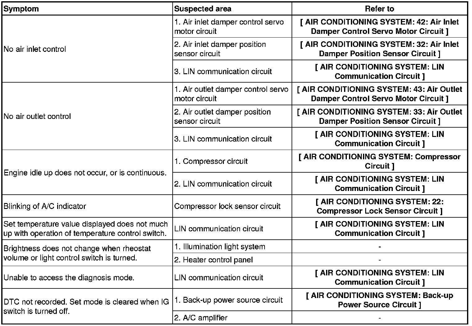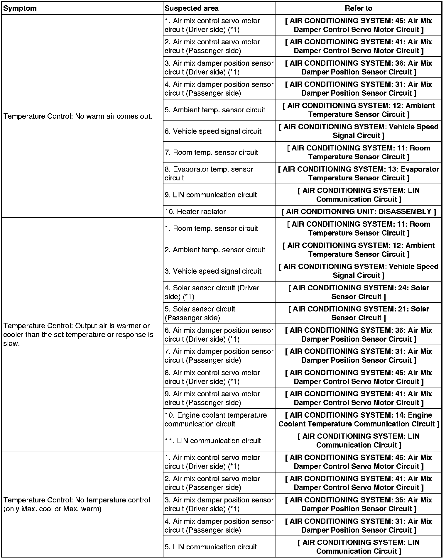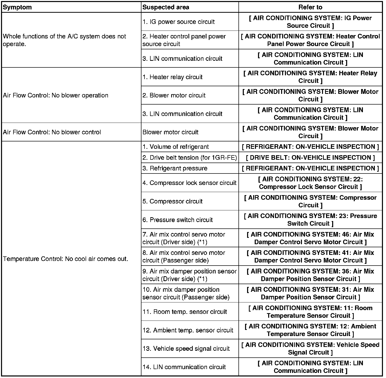 AIR CONDITIONING: AIR CONDITIONING SYSTEM: PROBLEM SYMPTOMS TABLE
