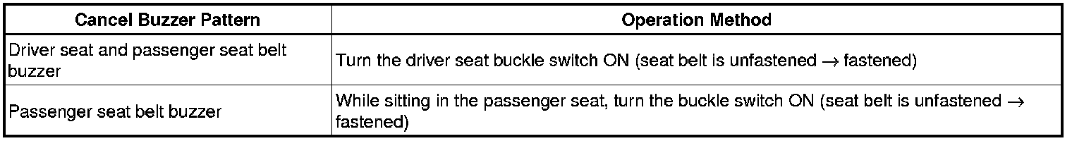 HINT: After disconnecting and reconnecting the negative (-) battery cable, the driver seat and passenger seat buzzer will be set to ON.