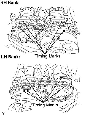 (1) Align the timing marks of the camshaft timing gears and bearing caps.