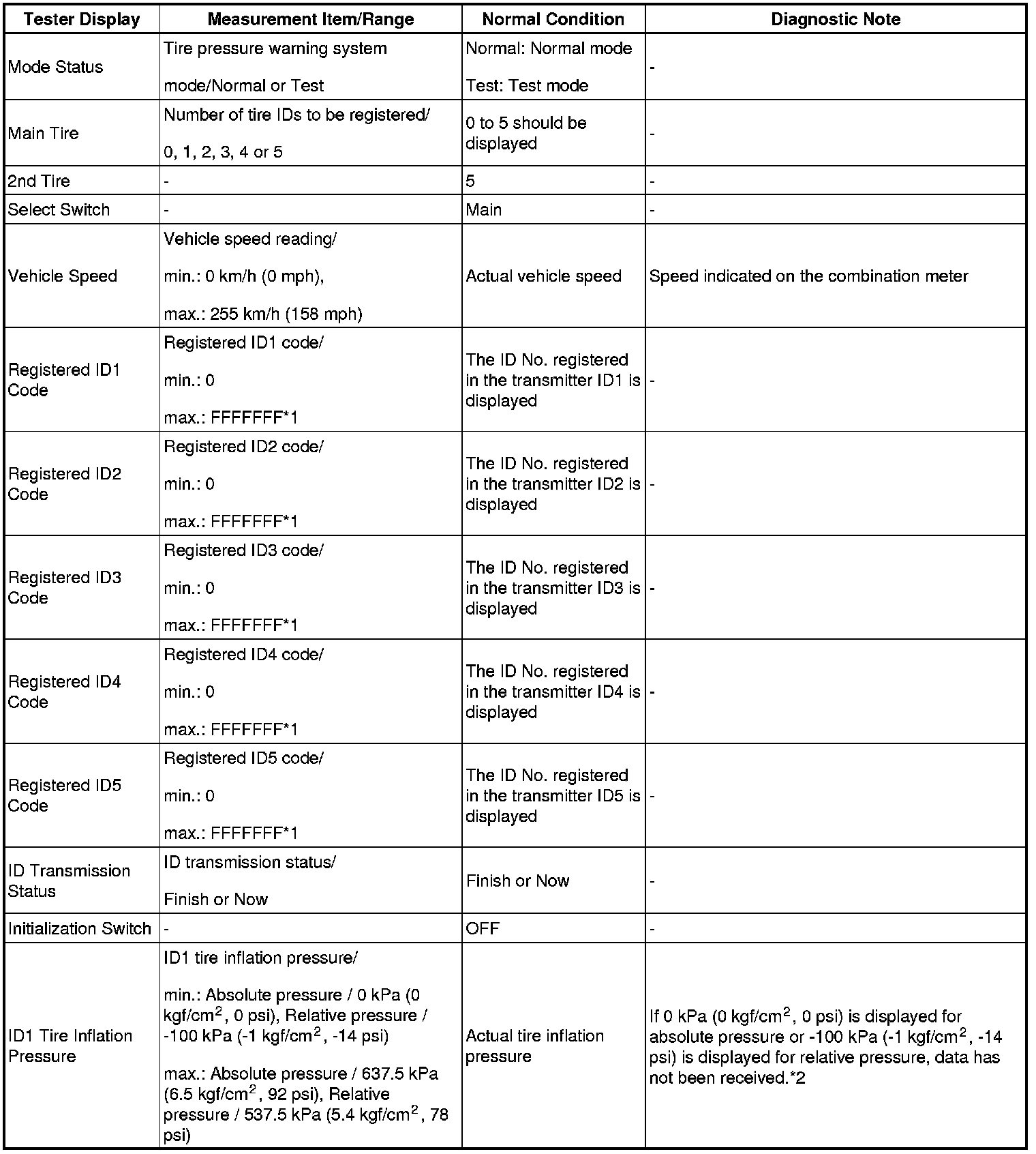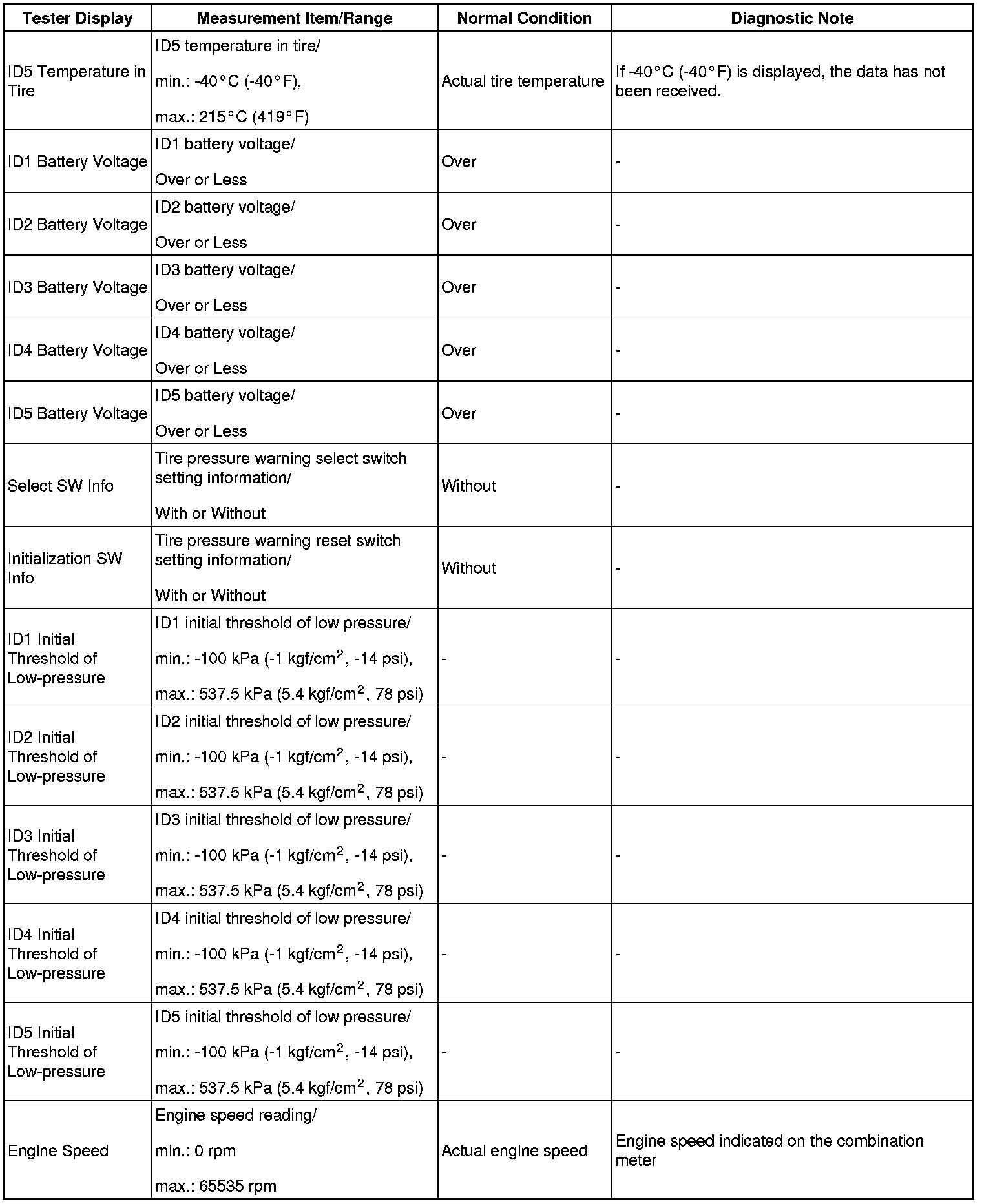 TIRE AND WHEEL: TIRE PRESSURE WARNING SYSTEM: DATA LIST / ACTIVE TEST