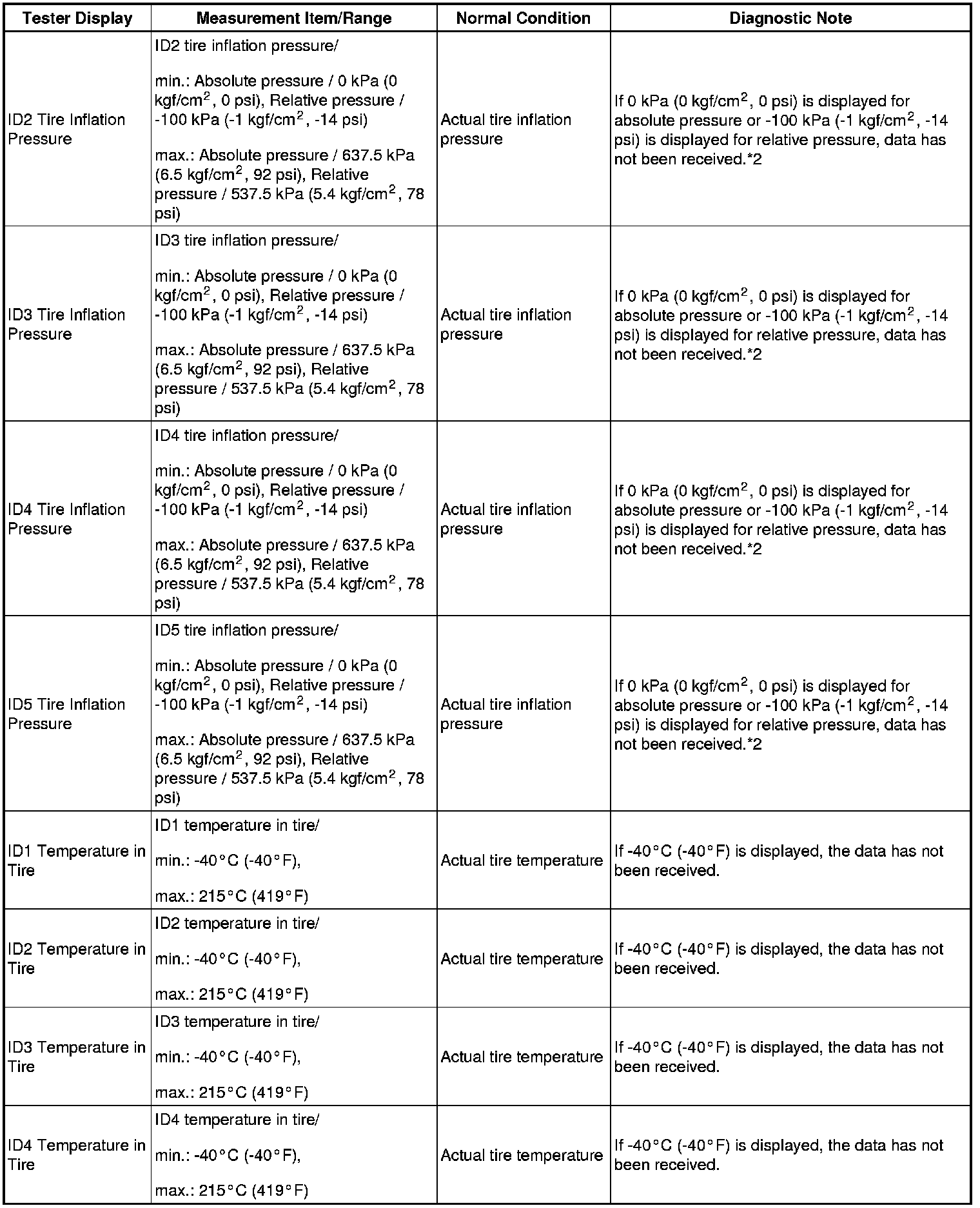 *2: It may take about 2 or 3 minutes until the values are displayed. If the values are not displayed after a few minutes, perform troubleshooting according to the inspection procedure for DTCs C2121/21 to C2125/25.