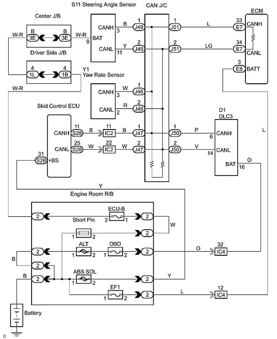 13. CHECK CAN BUS LINE FOR SHORT TO +B (YAW RATE SENSOR SUB BUS LINE)