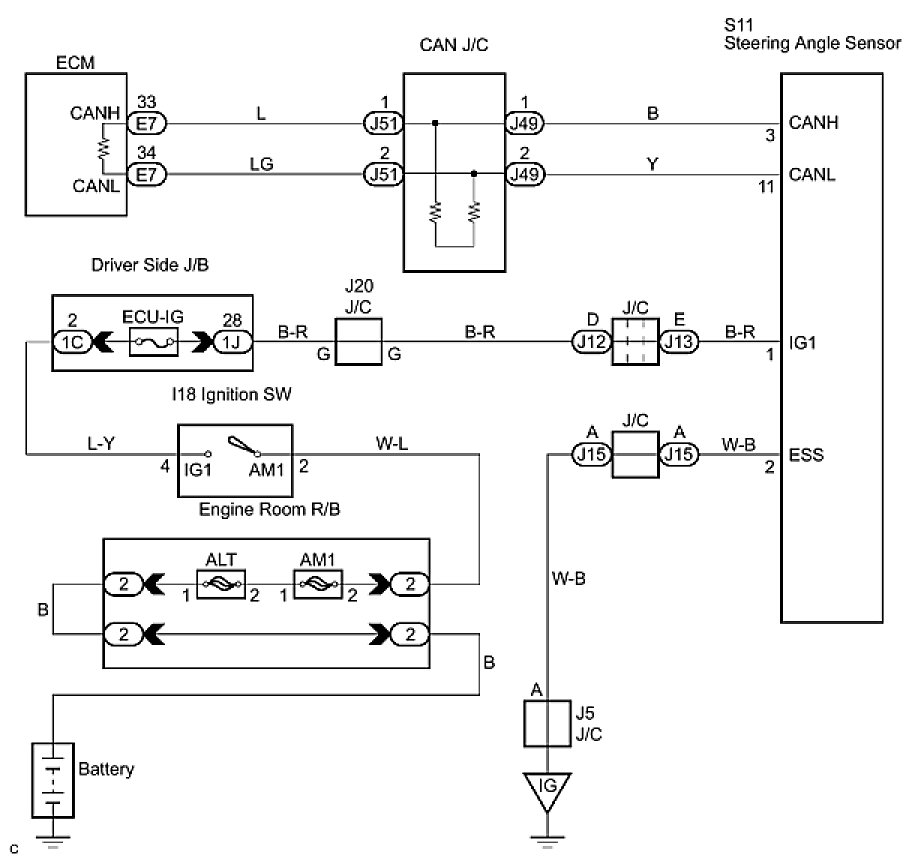 1. CHECK CAN BUS LINE FOR DISCONNECTION (STEERING ANGLE SENSOR SUB BUS LINE)