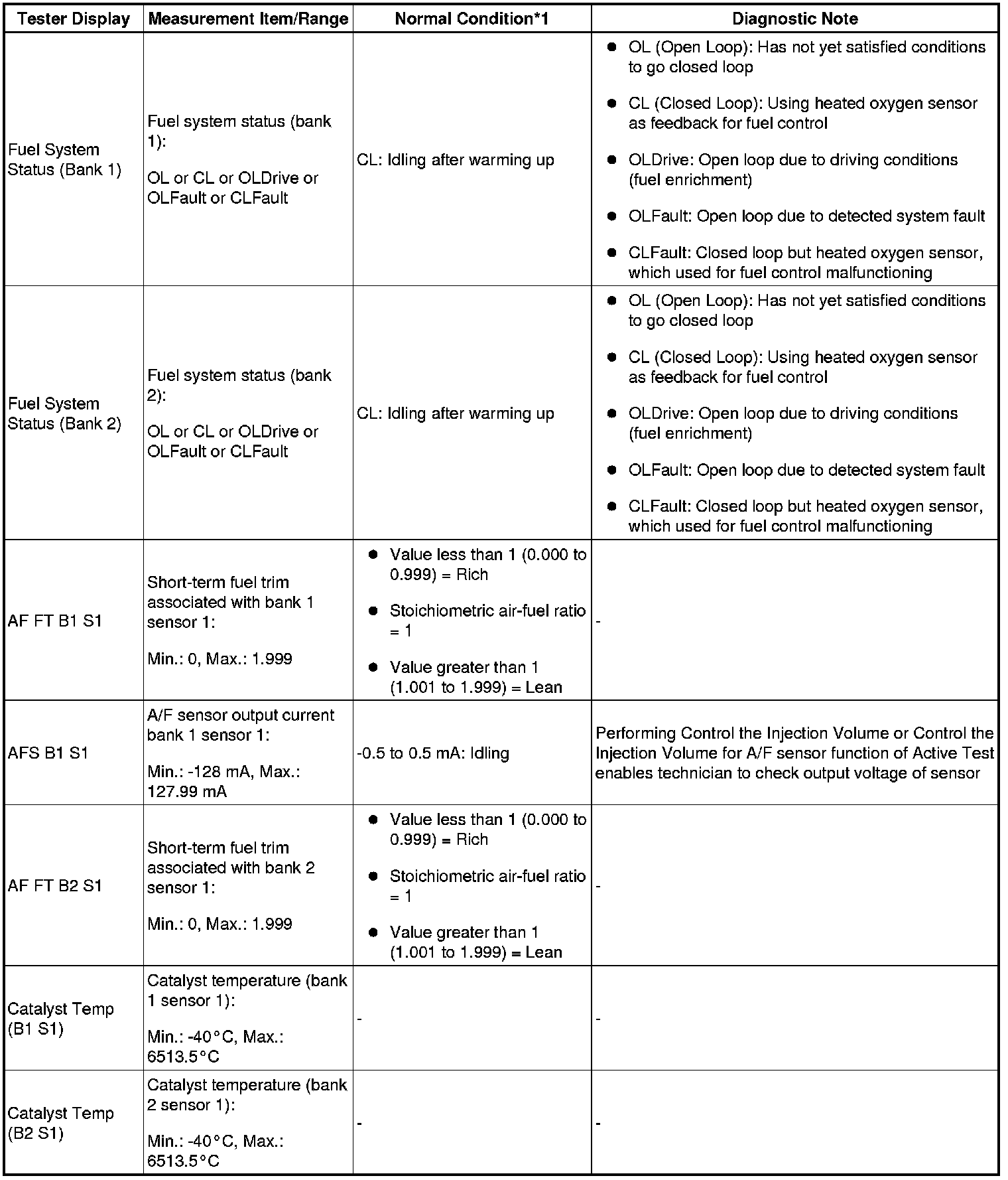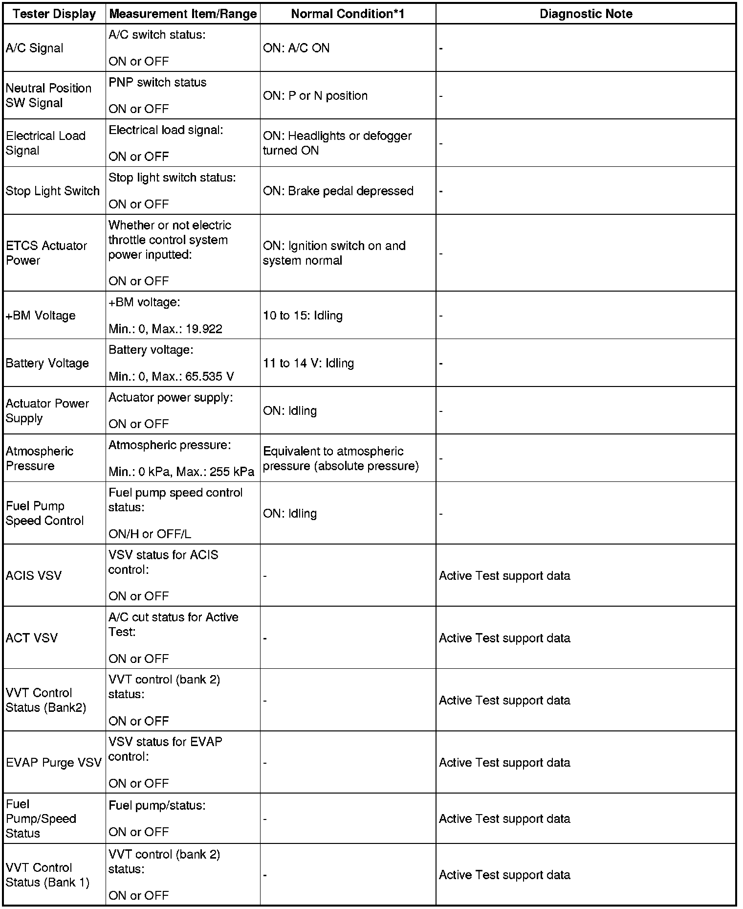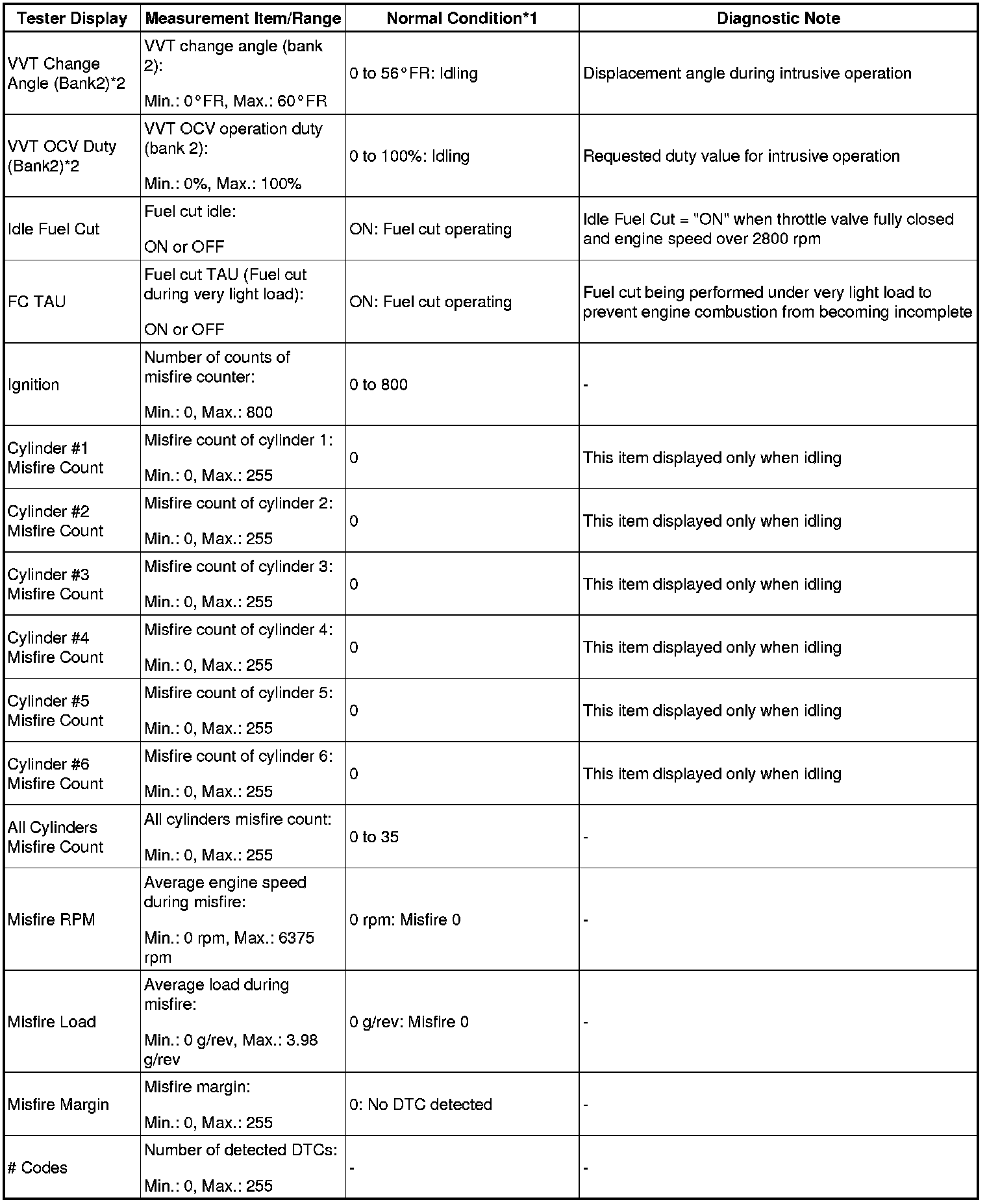 - *2: Data List values are only displayed when performing the following Active Test: Control the VVT Linear (Bank 1), Control the VVT Linear (Bank 2), Control the VVT Exhaust Linear (Bank 1) and Control the VVT Exhaust Linear (Bank 2). For other Active Tests, the Data List value will be 0.