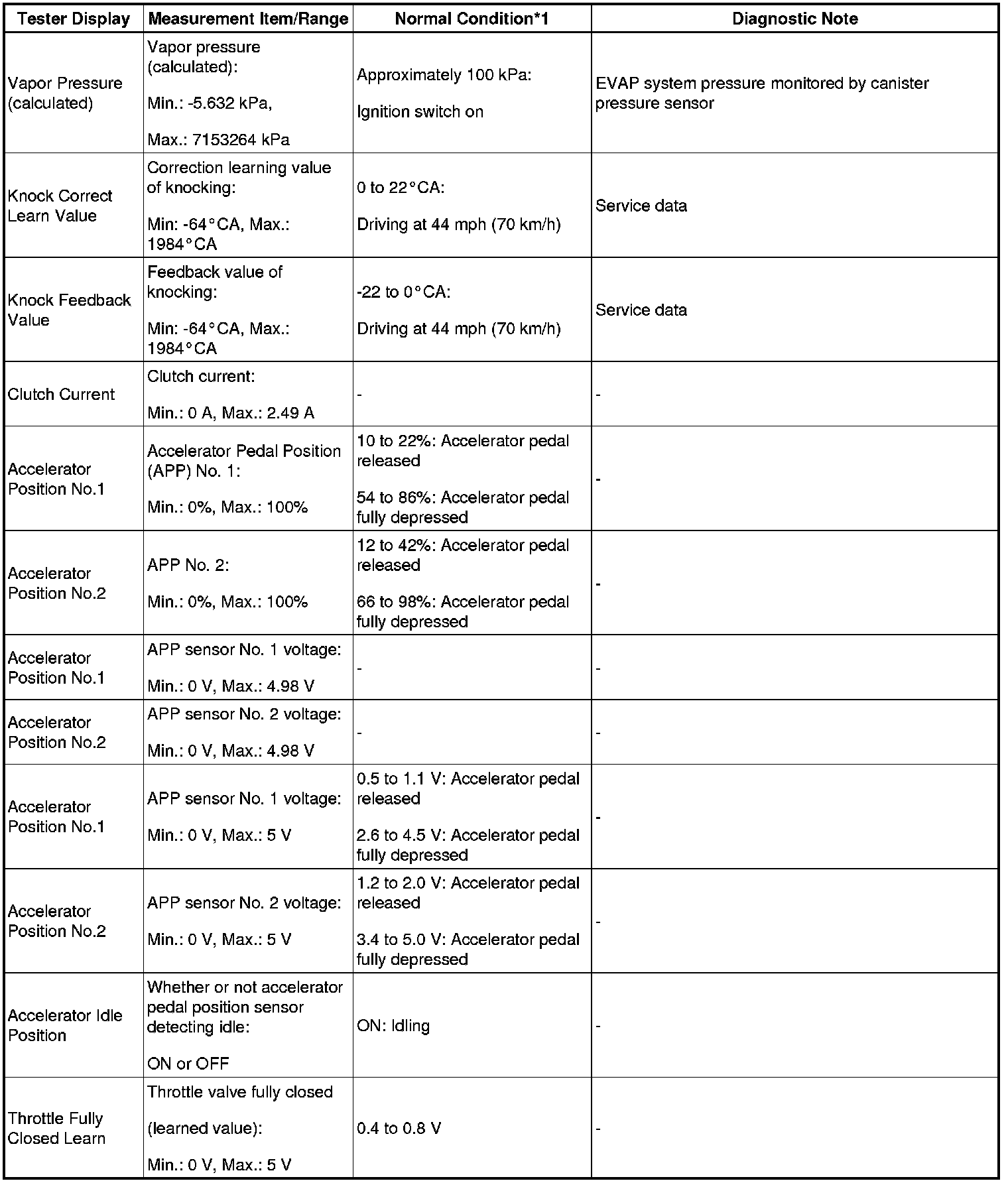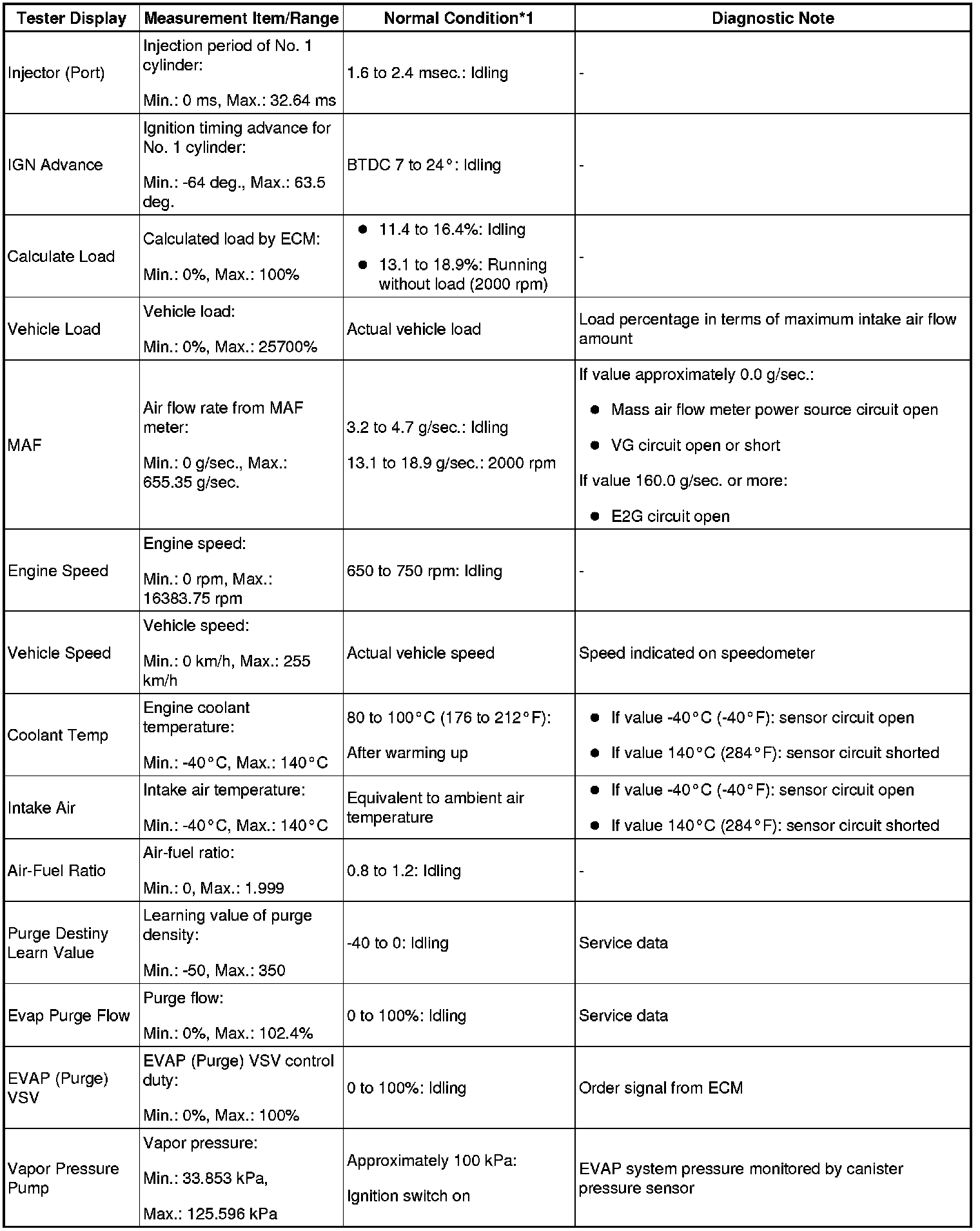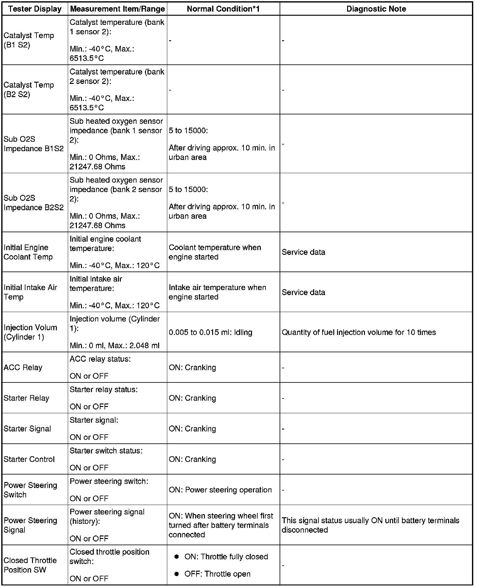- *2: Data List values are only displayed when performing the following Active Test: Control the VVT Linear (Bank 1), Control the VVT Linear (Bank 2), Control the VVT Exhaust Linear (Bank 1) and Control the VVT Exhaust Linear (Bank 2). For other Active Tests, the Data List value will be 0.