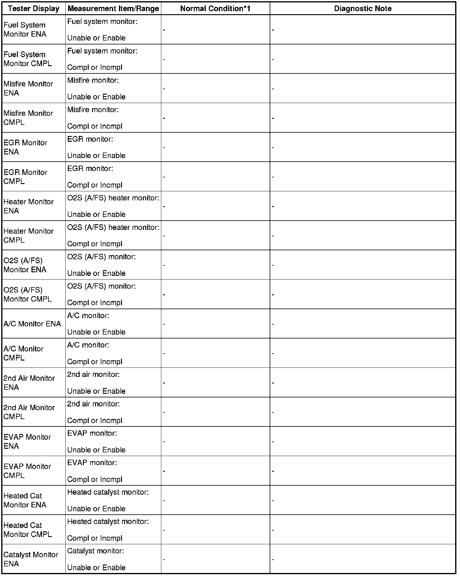 - *1: If no idling conditions are specified, the shift lever should be in the N or P position, and the A/C switch and all accessory switches should be OFF.