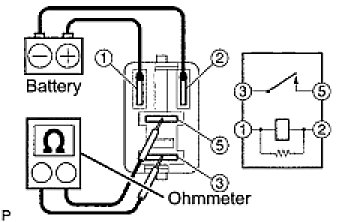 If the result is not as specified, replace the circuit opening relay.