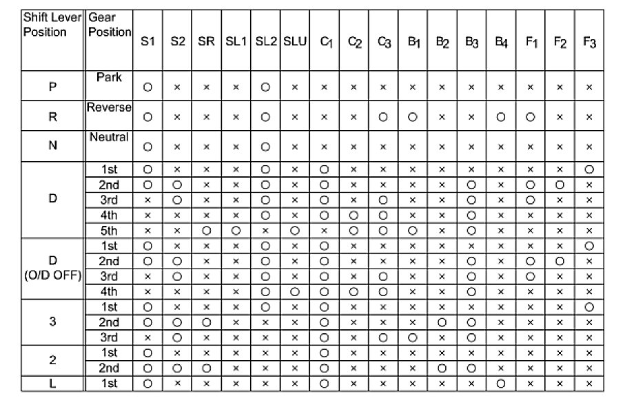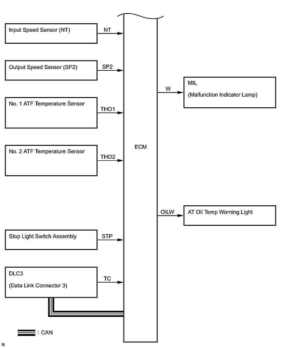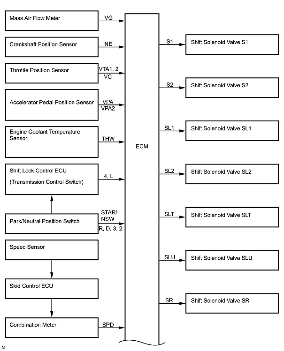 The configuration of the electronic control system in the A750E automatic transmission is as shown in the following chart.