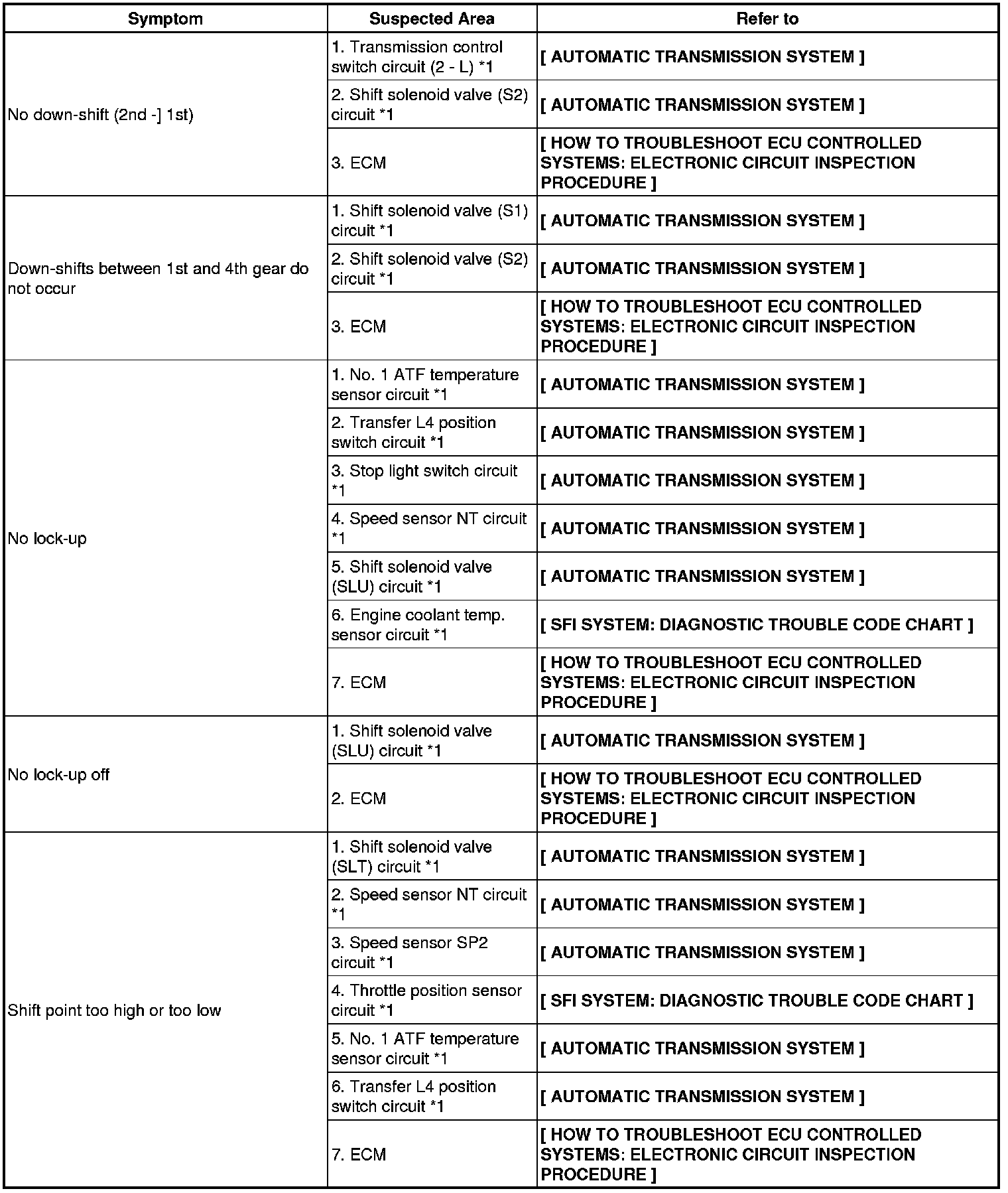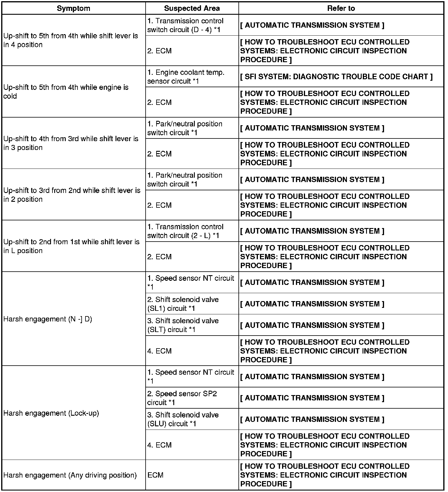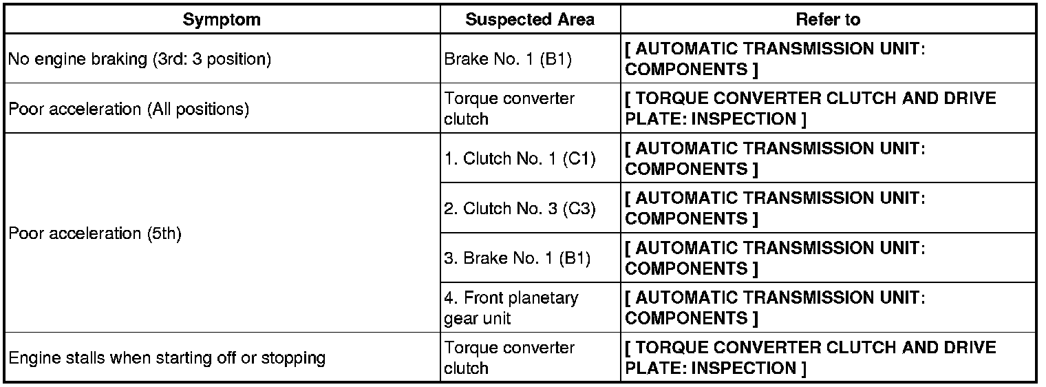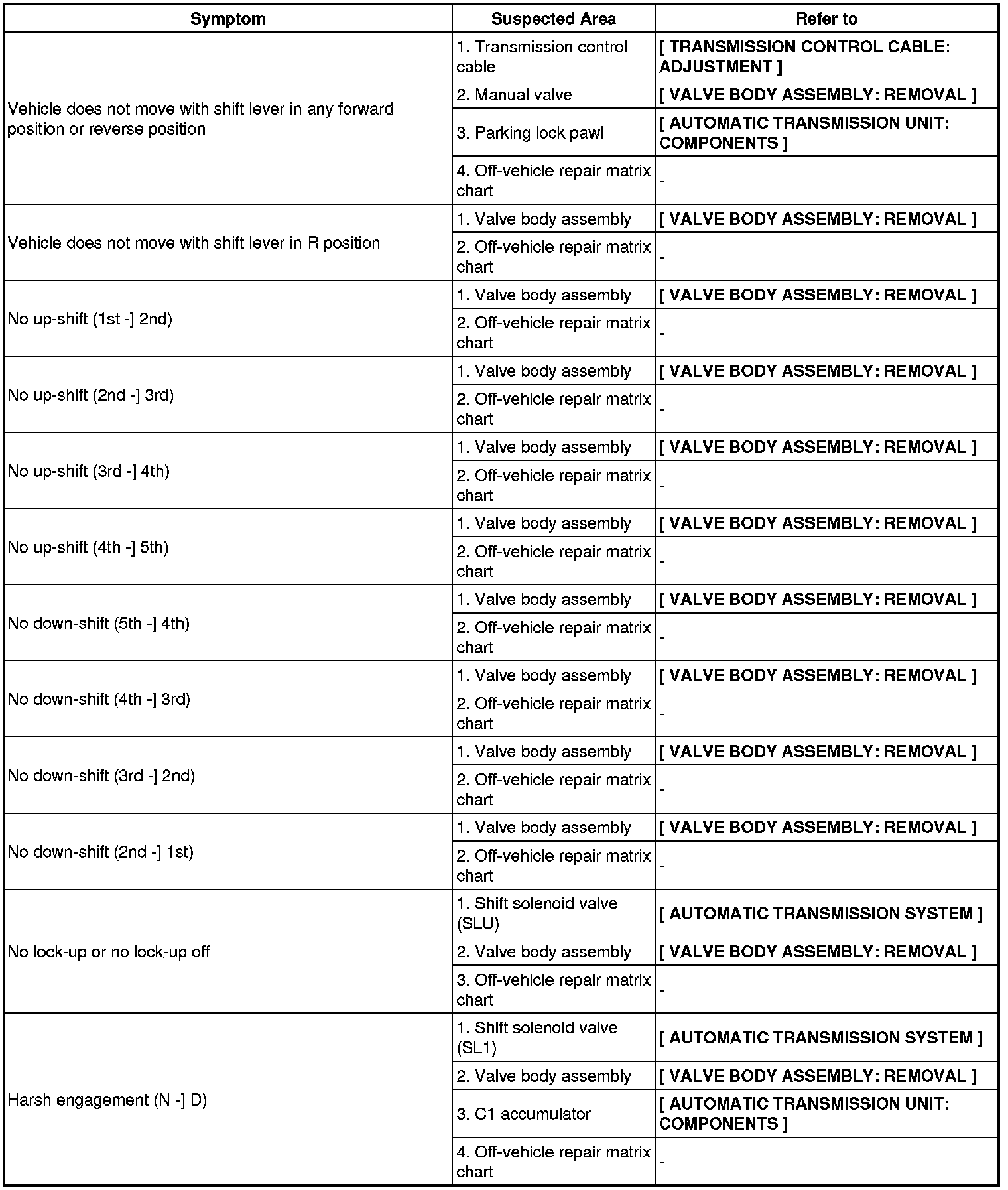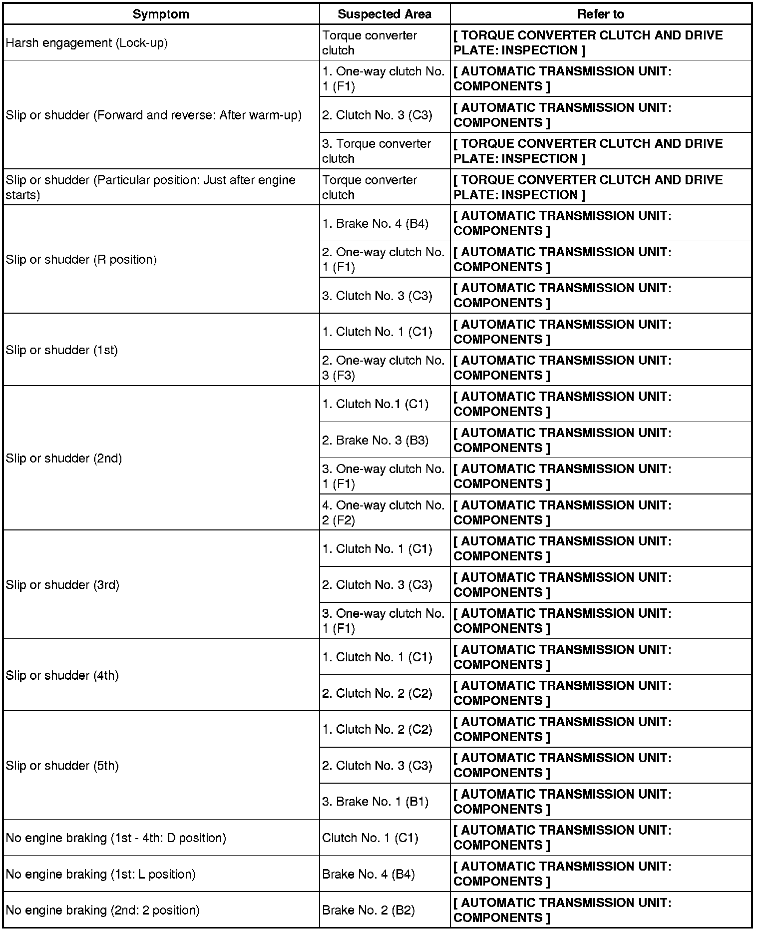 AUTOMATIC TRANSMISSION SYSTEM: PROBLEM SYMPTOMS TABLE