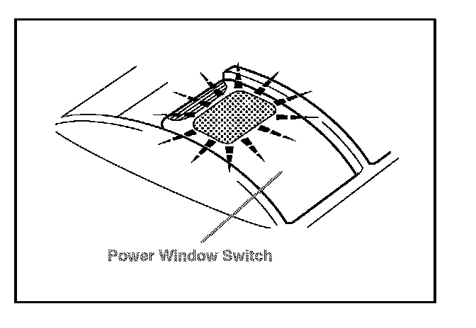 2. Turn the ignition switch to the "ON" position. Halfway close the door glass by pressing the switch. Then fully pull up on the switch until the door glass is fully closed, and continue holding the switch for approximately one second after the door glass is fully closed.