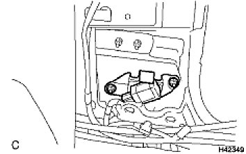 - When installing the side airbag sensor LH, be careful that the SRS wiring does not interfere with other parts and that it is not pinched between other parts.