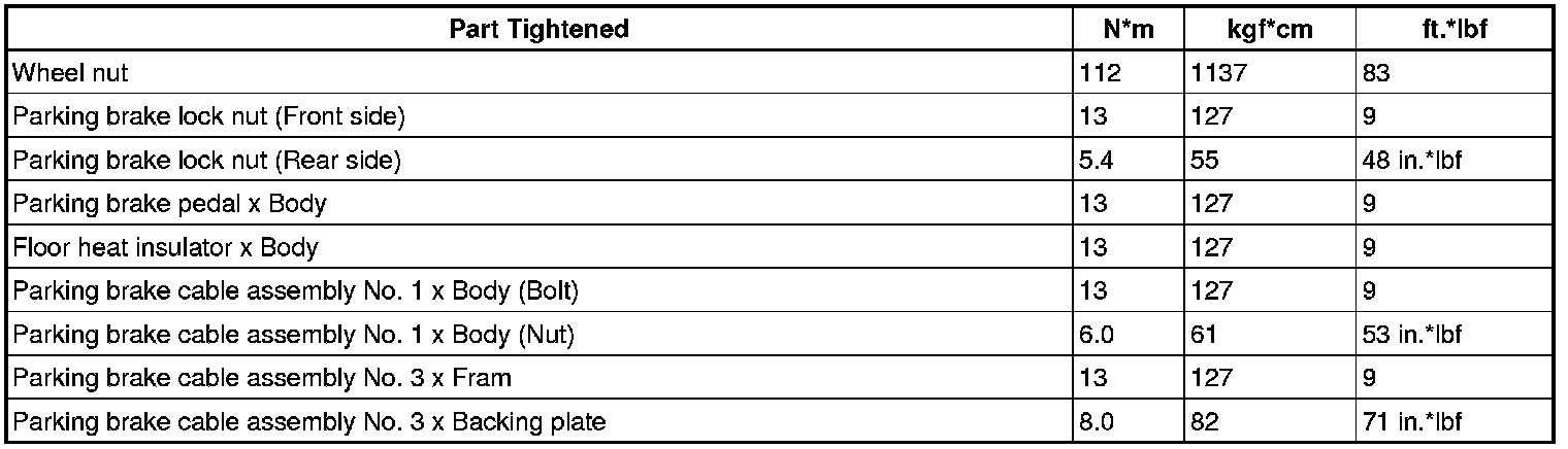 SERVICE SPECIFICATIONS: PARKING BRAKE: TORQUE SPECIFICATIONS