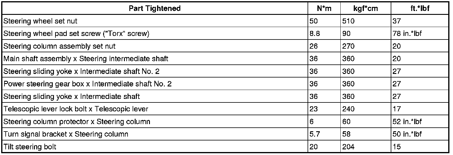: TORQUE SPECIFICATIONS