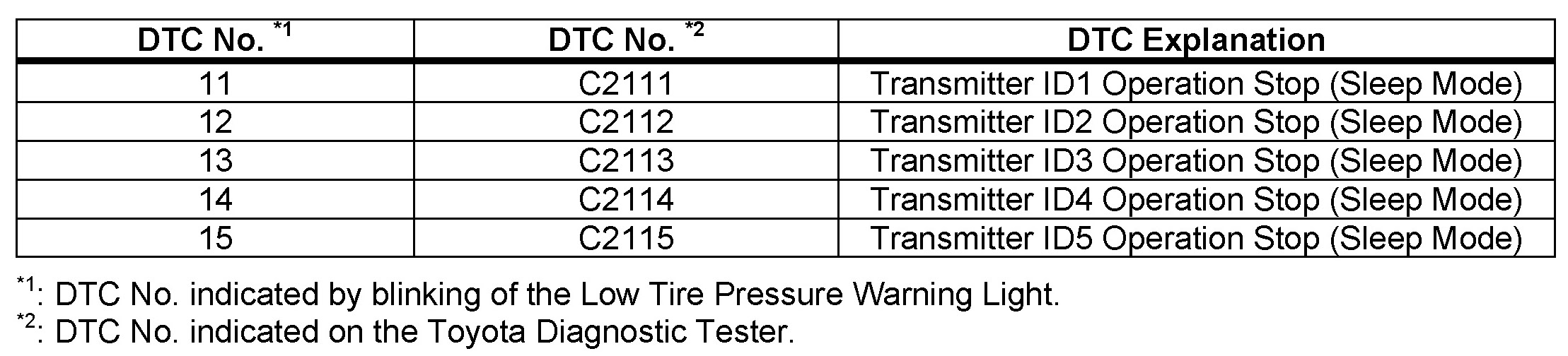 - The DTCs will automatically clear when tire pressure warning valves/sensors are activated.