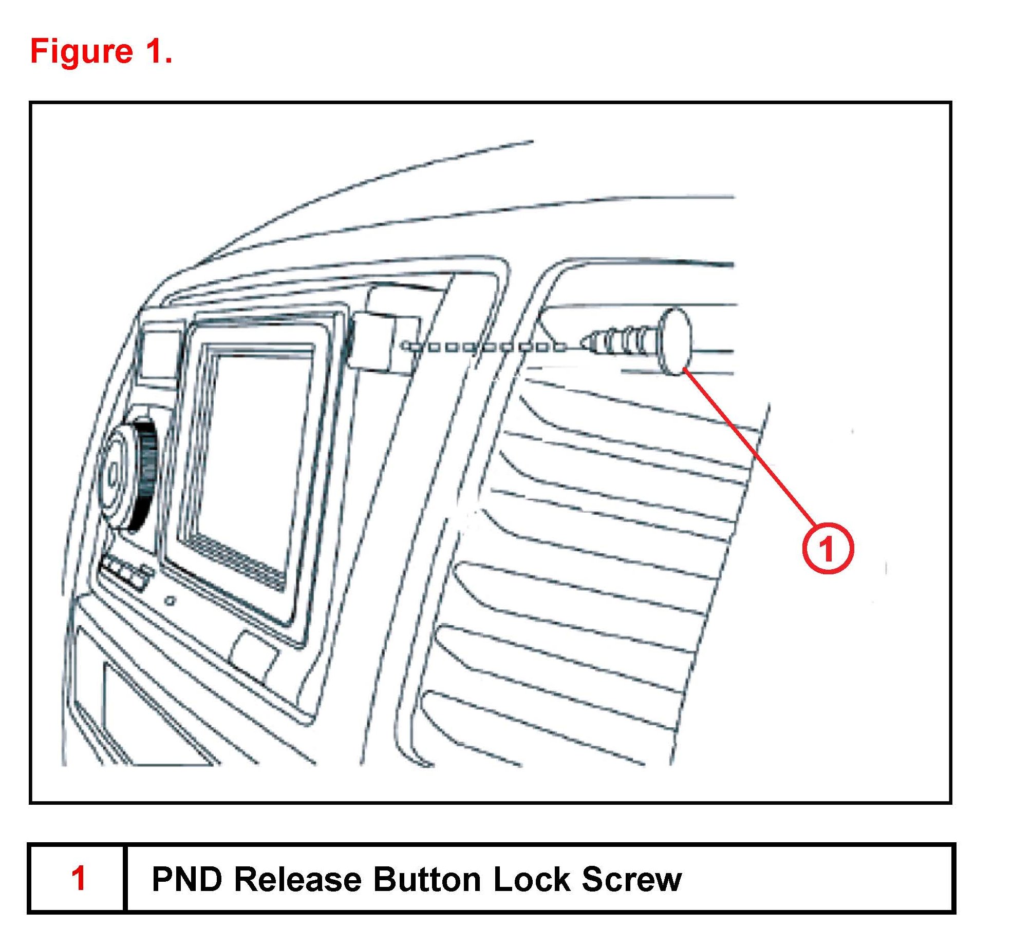 1. Loosen and remove the PND release button lock screw with a T6 torx driver carefully, making sure not to scratch the PND unit or the dashboard.