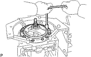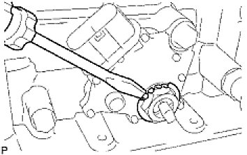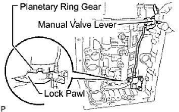 (b) Shift the manual valve lever to the P position, and confirm that the planetary ring gear is correctly locked up by the lock pawl.