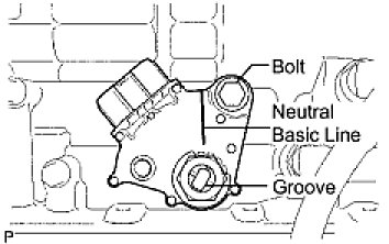 (e) Align the neutral basic line with the switch groove as shown in the illustration, and tighten the adjusting bolt.