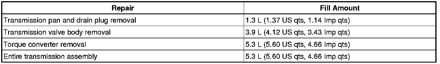 (a) Fill the transmission with the correct amount of fluid as listed in the table below.