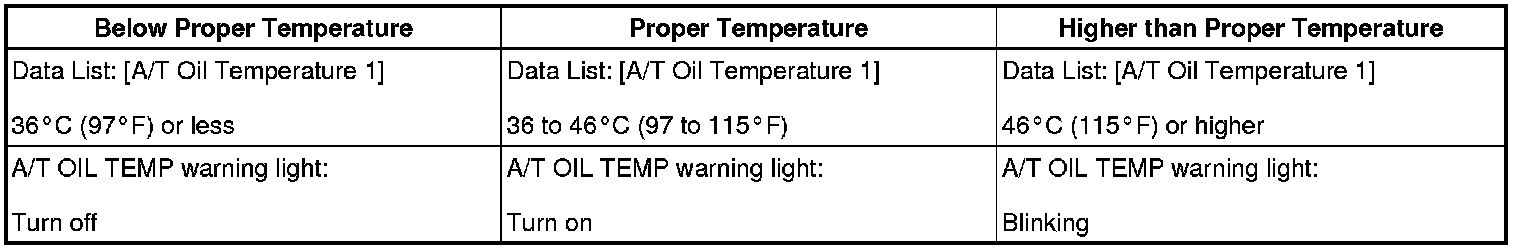(h) The A/T OIL TEMP warning light will come on again when the fluid temperature reaches 36°C (97°F) and will blink when it exceeds 46°C (115°F).