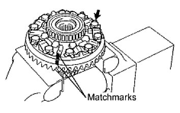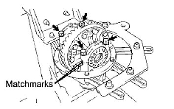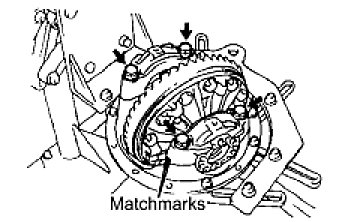(e) Align the matchmarks on the ring gear and differential case assembly.